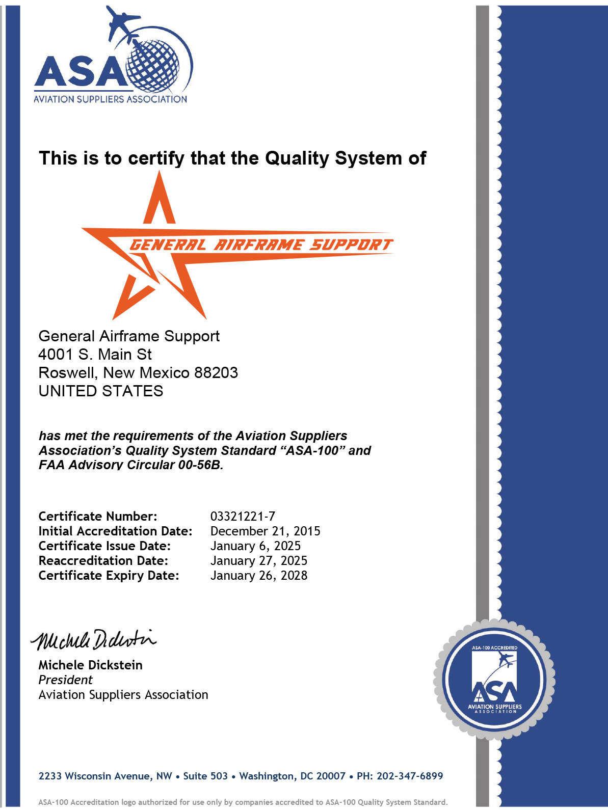 At General Airframe Support, quality assurance isn't just a department; it's embedded in everything we do. When it comes to your aircraft and the critical parts that keep it flying, reliability should never be a question. You can operate with complete confidence knowing that our standards don't just meet, they exceed the rigorous benchmarks set by industry leaders like the Aviation Suppliers Association (ASA) and Aircraft Fleet Recycling Association (AFRA).